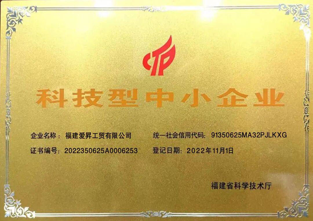 值此国庆中秋佳节来临之际,爱昇工贸喜传捷报:凭借卓越的创新能力、敏锐的市场洞察力以及诚信可靠的服务,公司成功荣获2025年“福建省创新型中小企业”荣誉称号!这标志着爱昇工贸在科技创新能力、成果转化效率及产业贡献度等方面获得政府相关部门的高度认可,充分展现了企业稳健的发展态势、强劲的产业韧性以及积极履行社会责任的企业担当。